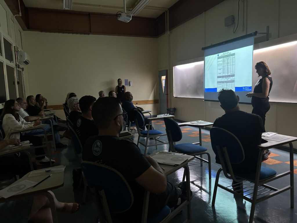 No terceiro dia, receberam a Assessora de Ensino do Sistema Anglo de ensino com temas Excelência Acadêmica, Mapa de Foco, Comunicação Construtiva e, as novidades do Plural.